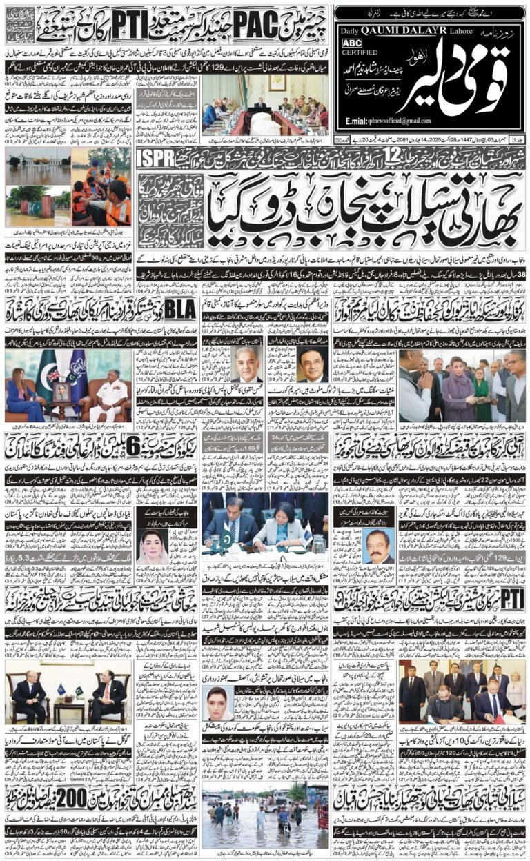 روزنامہ قومی دلیر 28-08- 2025 صفہ 1